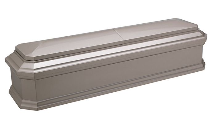 Féretro fabricado en madera. De líneasrectas, con cortes en las esquinas , tapa curva. Ataúd de elegante apariencia en todo su conjunto. El interior se encuentra impermeabilizado y su forro está confeccionado con tela raso y espuma que ofrecen un contacto suave con el ataúd. Media luna. Se encuentra en acabado duco (color) y en natural acabado mate (no brillo) y laqueado (brillante). Los modelos fabricados en cedro cuentan con forro metálico en su interior.